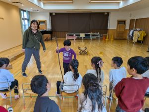 すみれさんは、絵本「どうぞのいす」の世界で遊びました。