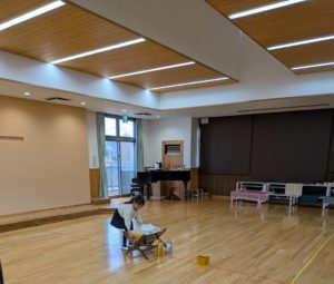 すみれさん、ばらさん、ゆりさんは3クラス一緒にホールでアドベント礼拝をしています。