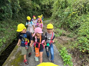 すみれぐみさんは、1学期からカタツムリのかたちゃんを育てています。迷子になったかたちゃんの卵をお家まで運んだね。