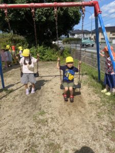 9月は、地震からの火災を想定した訓練でした。火災ベルが鳴ると、さっと先生の居る場所に集まれるようになりました。先生から離れていた場所にいても、体を守る態勢になれます。